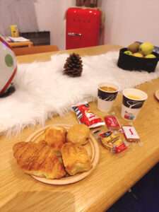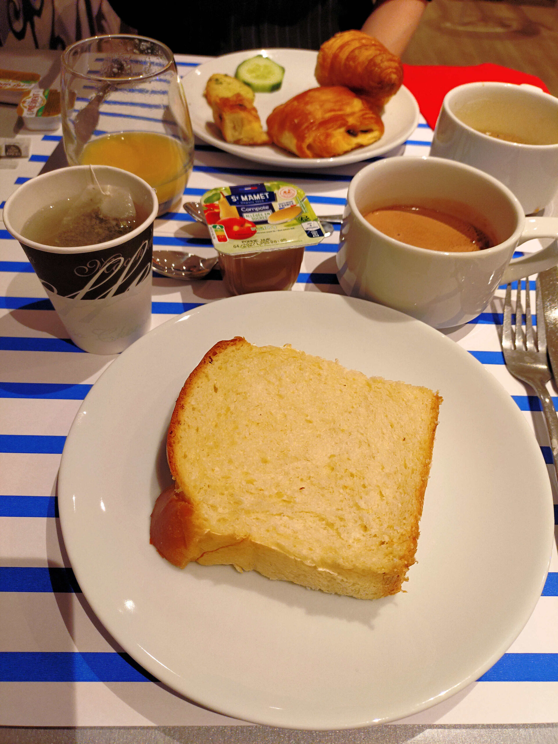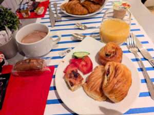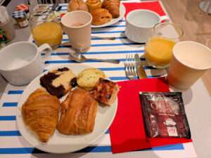 ホテルに戻ると、あの美味しいパン・オ・ショコラやクロワッサン等が食べれます。