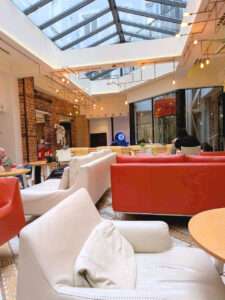 ゆったりソファ席からテーブル席まで、広いスペースにたくさんありますので大人数でも入りやすい場所です。