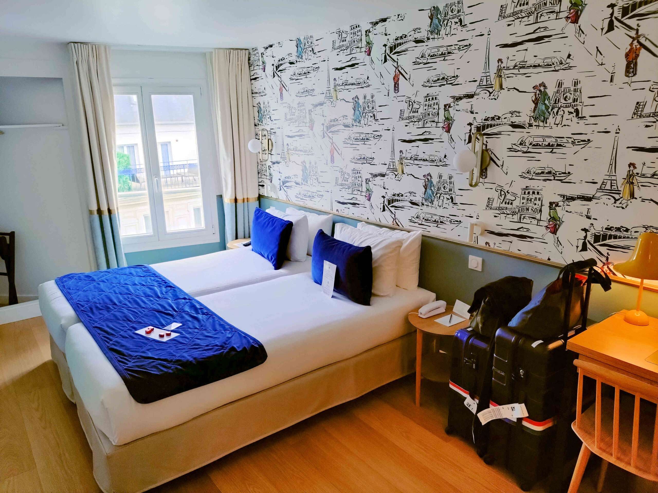 最初にお伝えしておくと「綺麗」「広い」「冷暖房完備」「冷蔵庫フリードリンク」なので、パリのスタンダードクラスホテルとしては群を抜いています。