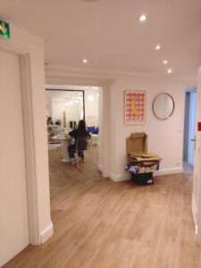 床がフローリングのように見えますが、珪藻土のように水が床に吸われていく、なんちゃってフローリングです。