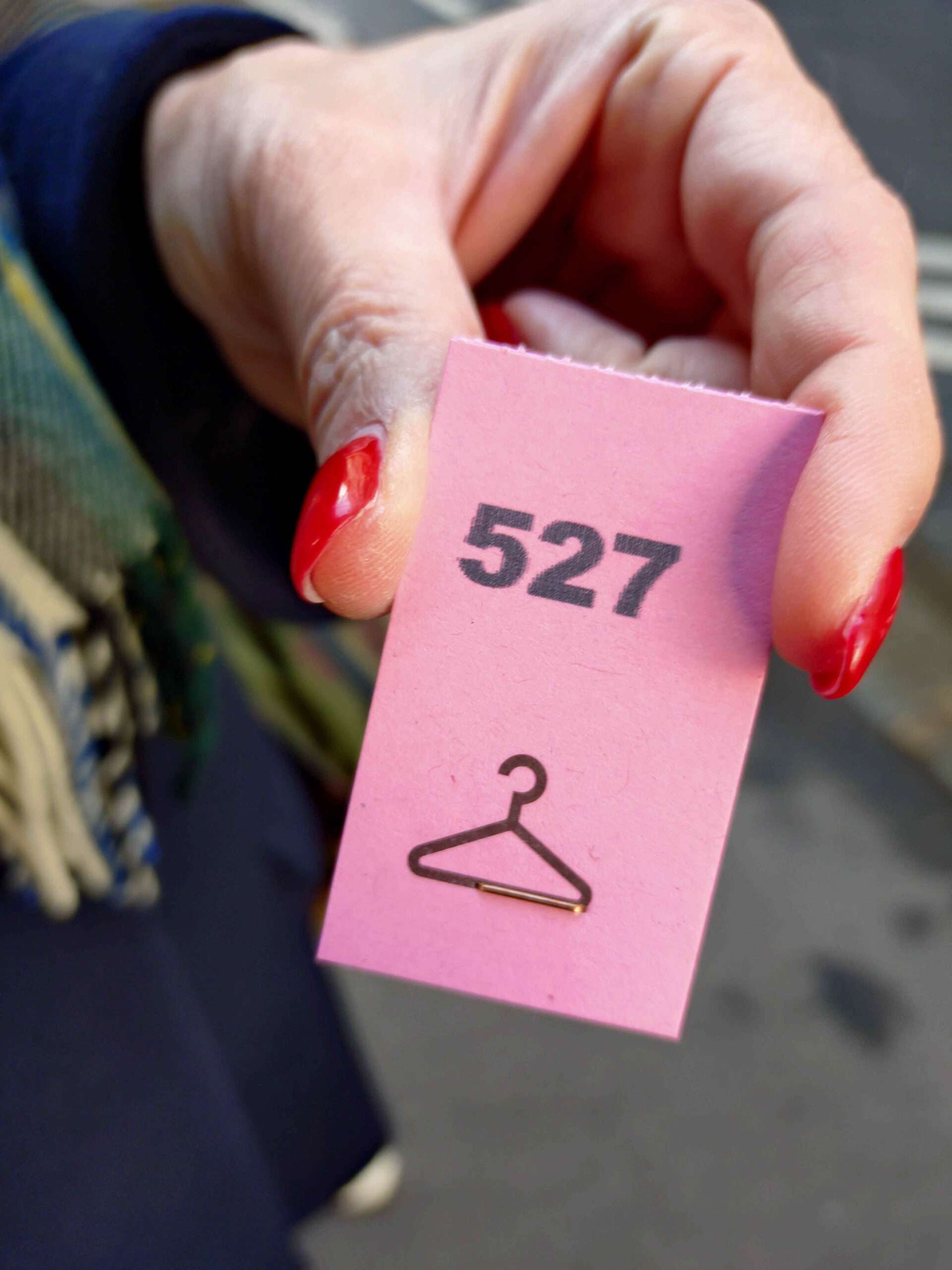 引き換えで渡された番号札を最後受け取る時に渡します。