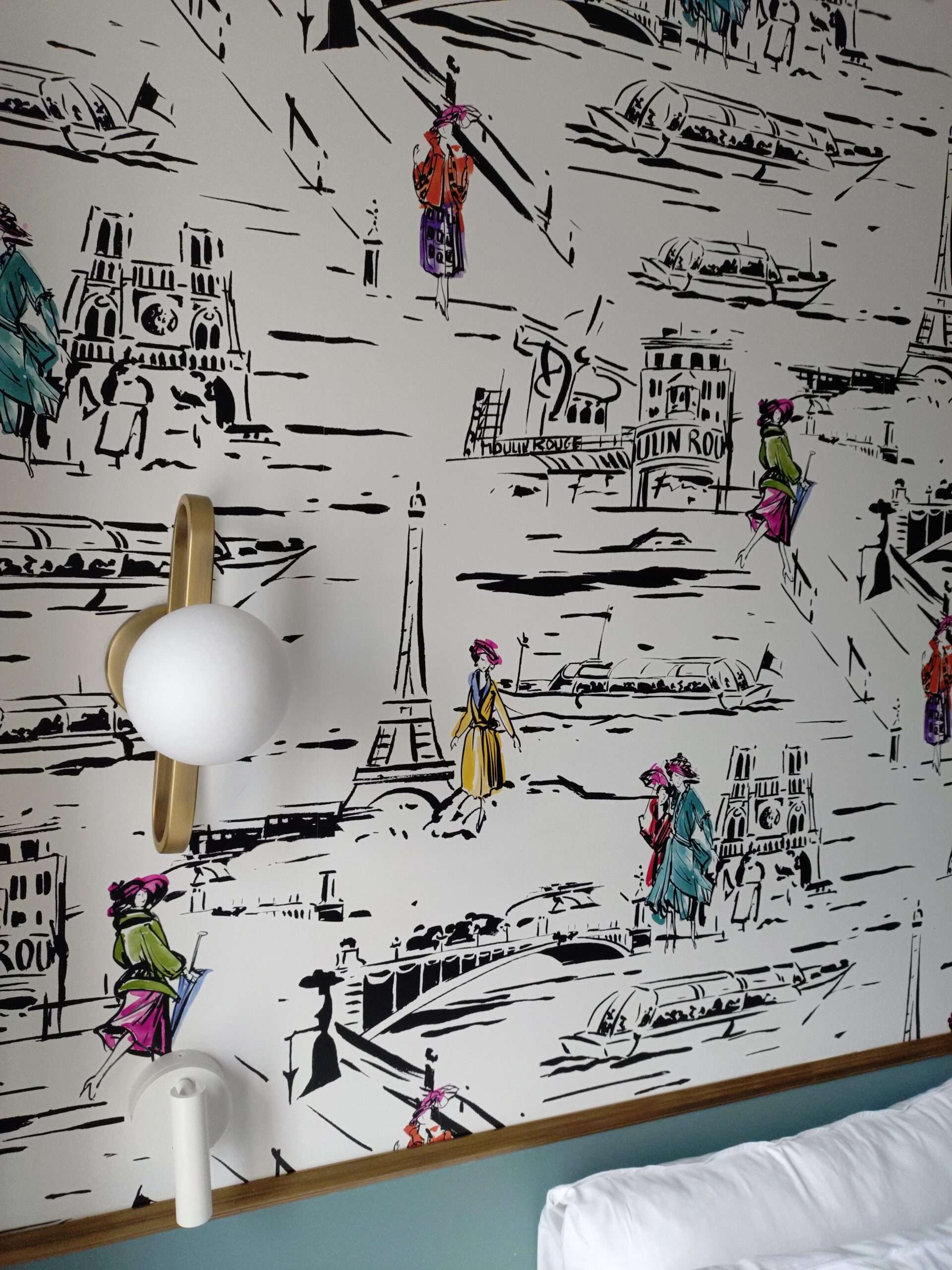 入ってまず目に入る「Parisの風景」が描かれた可愛い壁です。