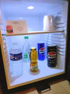 ①『お部屋のミニバーがすべて無料(ミネラルウォーター、炭酸水、アップルジュース、ペプシ、ペプシZERO)』★ミニバーの飲み物は毎日補充されます!