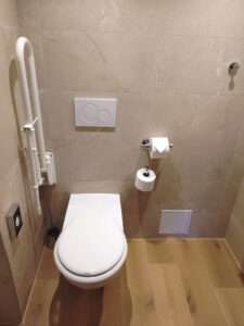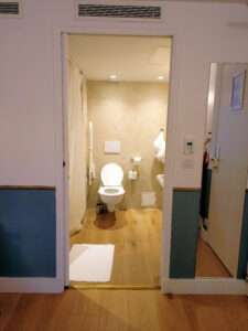 ⇩『こちらには綺麗で広いお手洗いもございます』