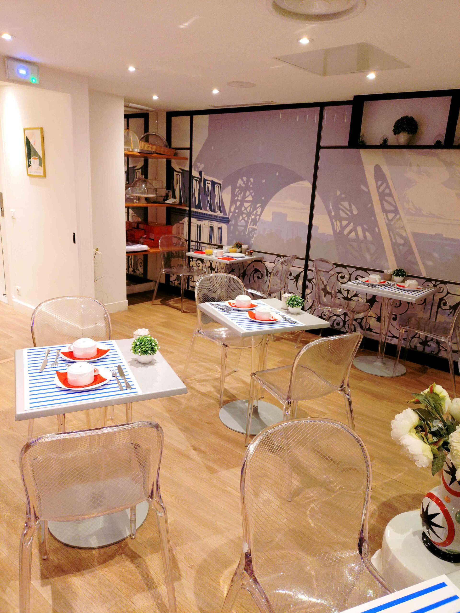 エッフェル塔が描かれたメインルームとは別に家族連れなどで混雑した時はもう一部屋が朝食会場として開放されます。