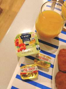 プレジデントバター2種類、ボンヌママンのジャム4種類とはちみつ。