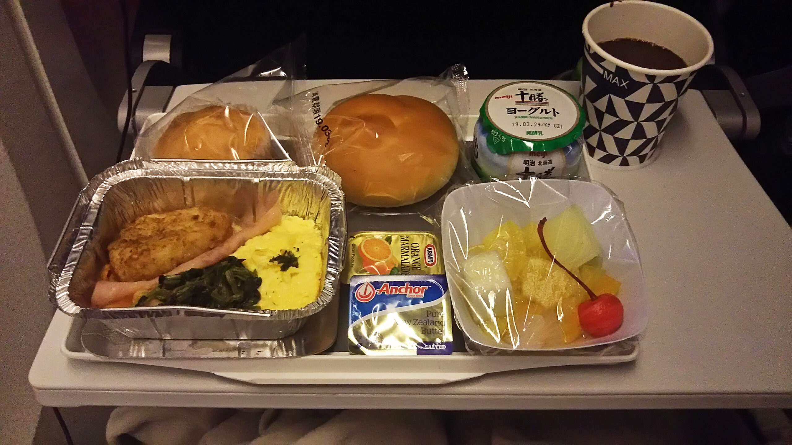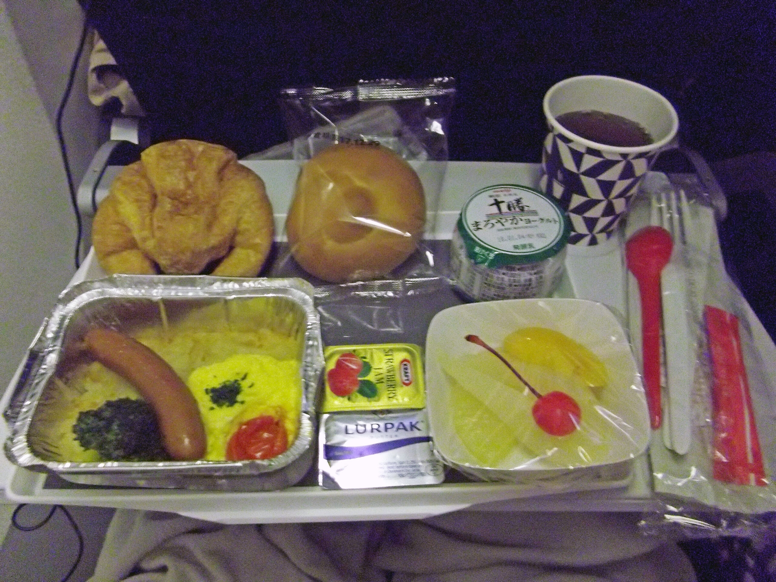 着陸の1時間半くらい前になると朝食の時間です。