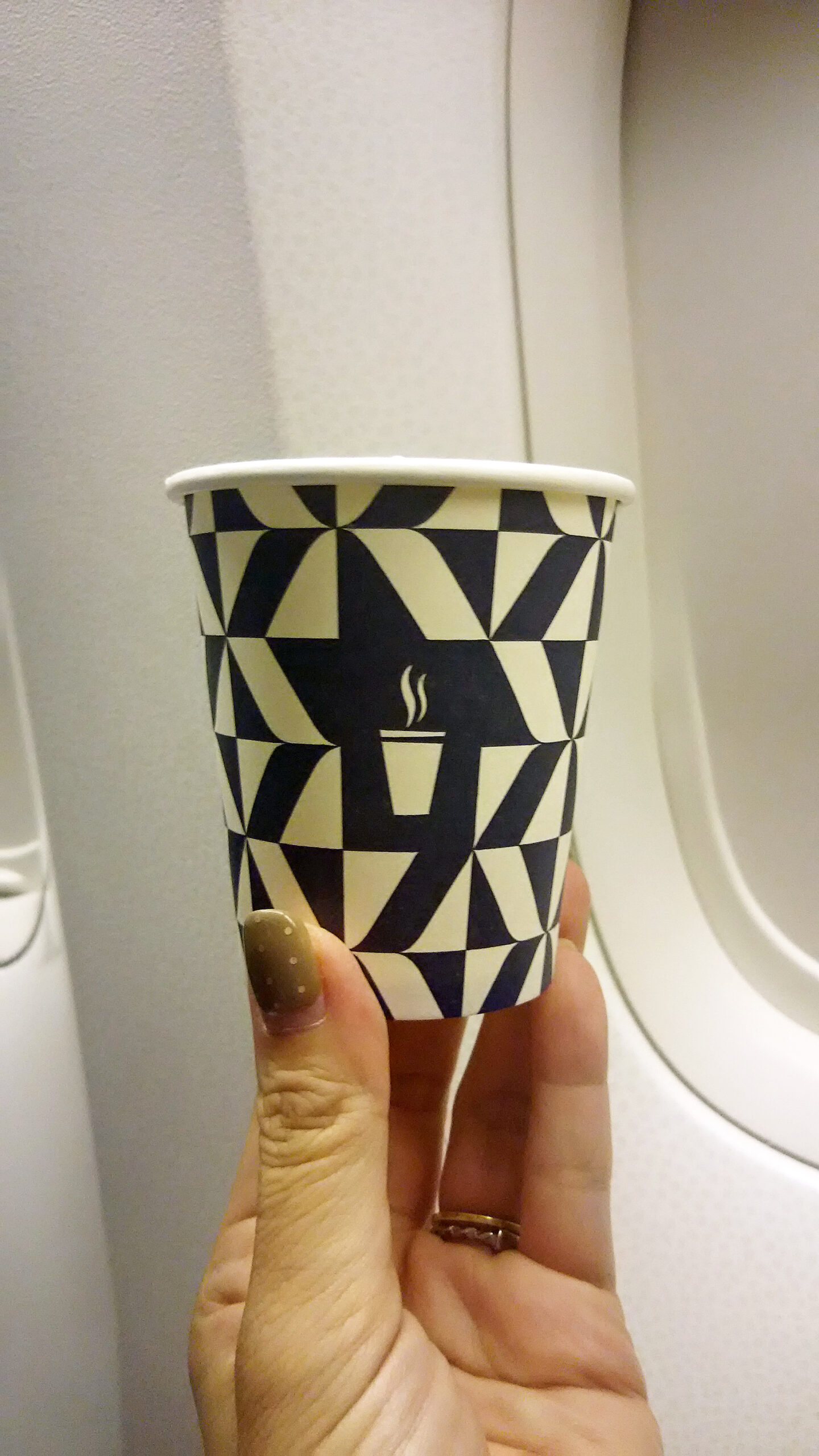 後ろの化粧室前に、フリードリンクと菓子が置いてありますので、化粧室ついでにお茶でもしながら、窓からしばらく綺麗な青い空と白い雲、ヨーロッパ大陸を見ながら、機内リフレッシュするのも良いと思います。