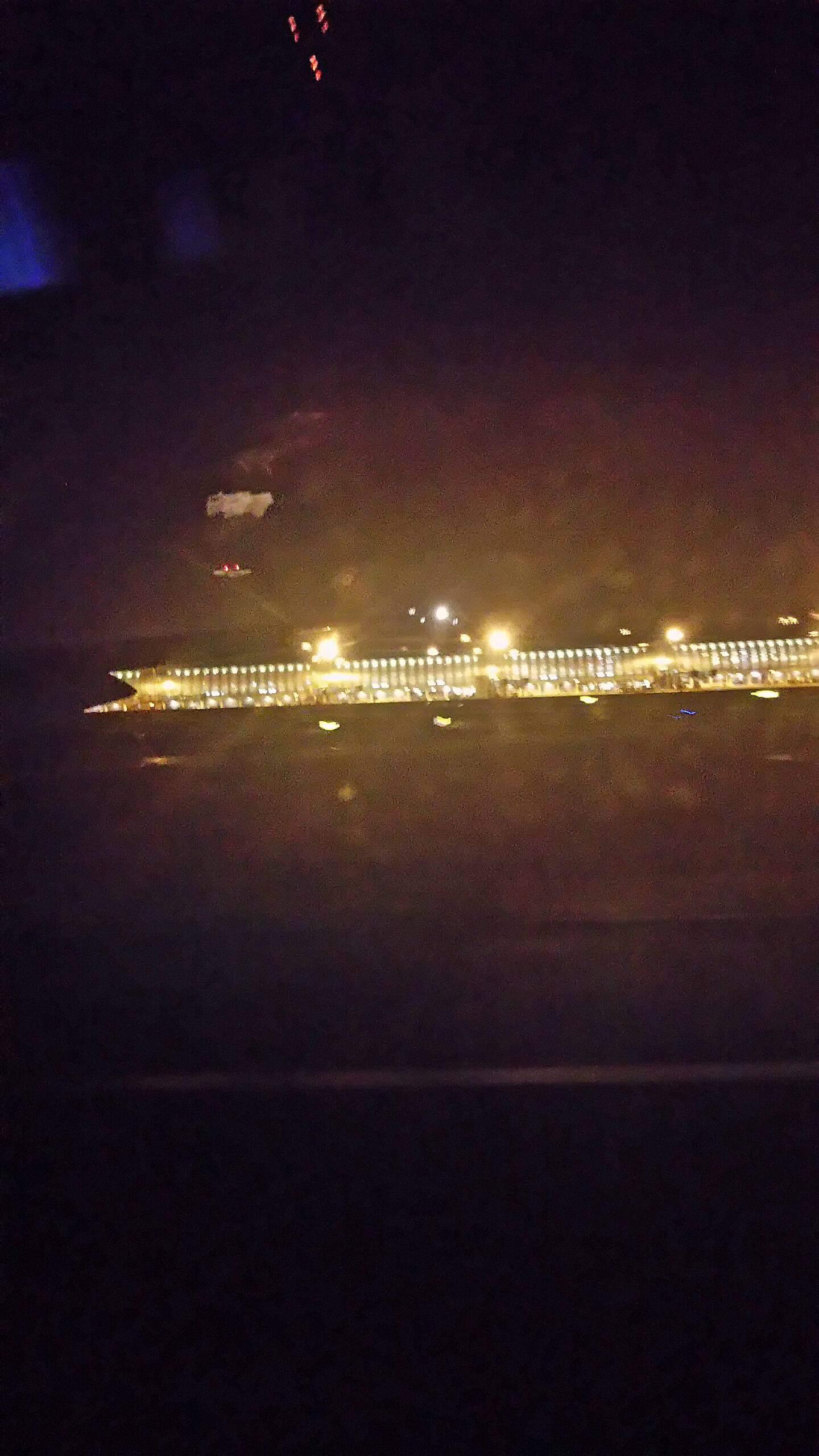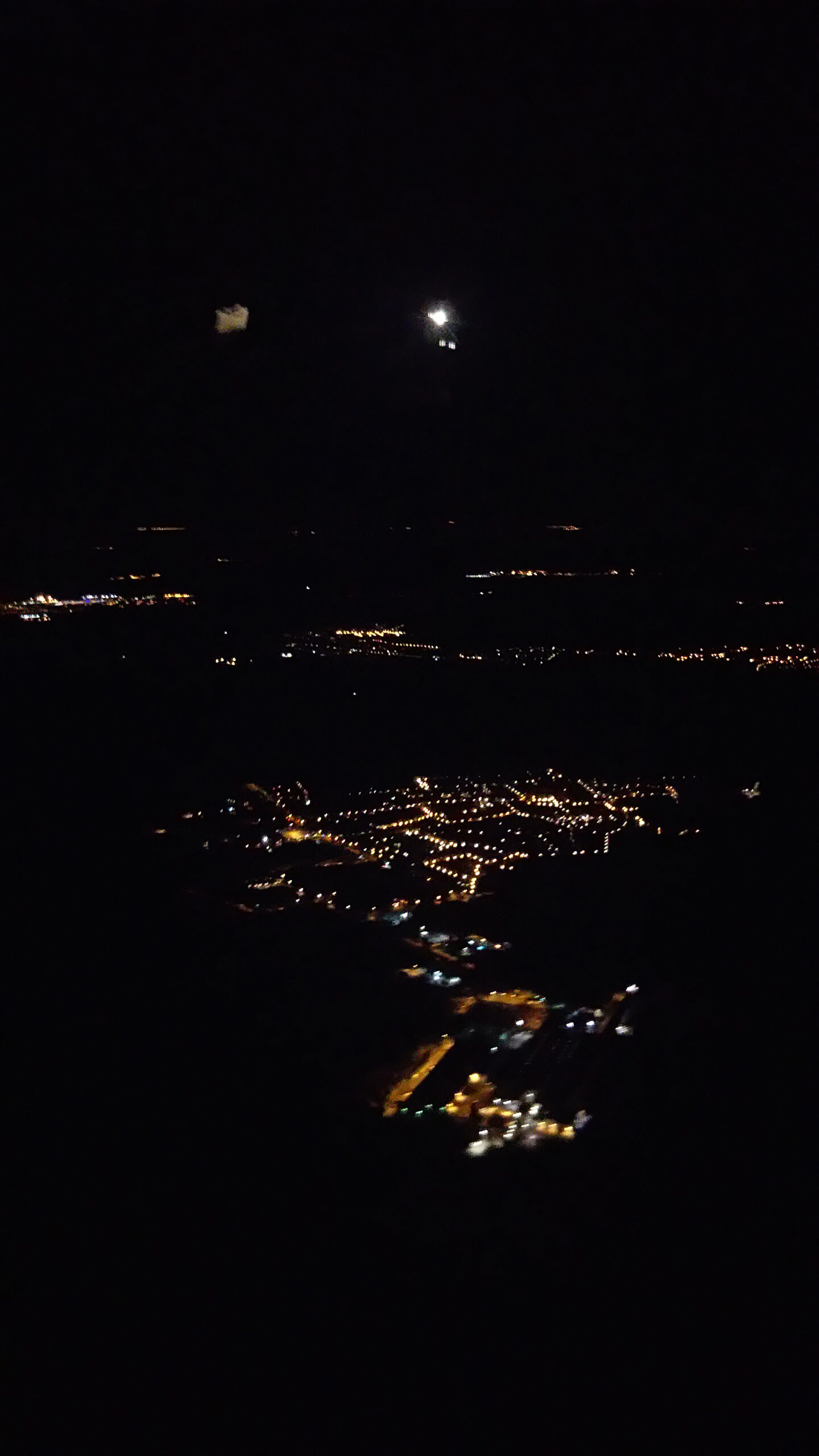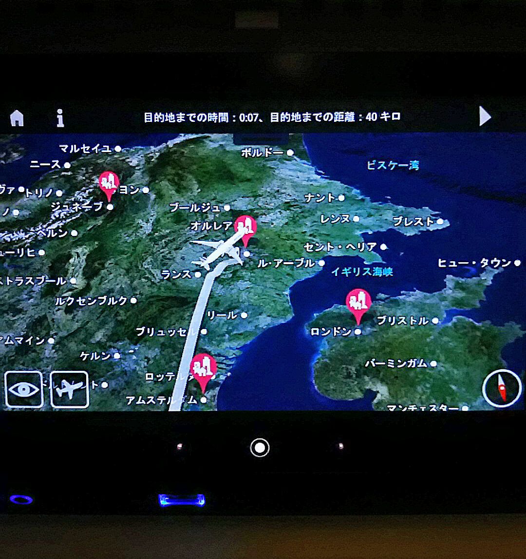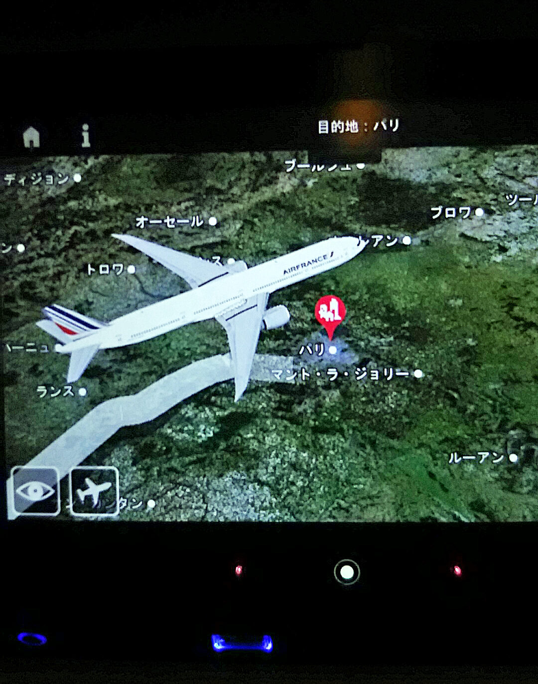 パリ郊外は真っ暗ですが、空港に近づくにつれて灯りが見えてきたら、約12時間の空旅が終わりに近づきます。
