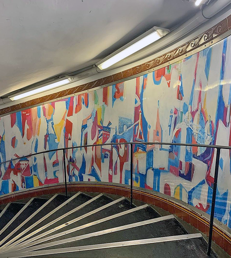 そのためエレベーターも設置されていますが、この駅の魅力は『らせん階段の壁画』です。