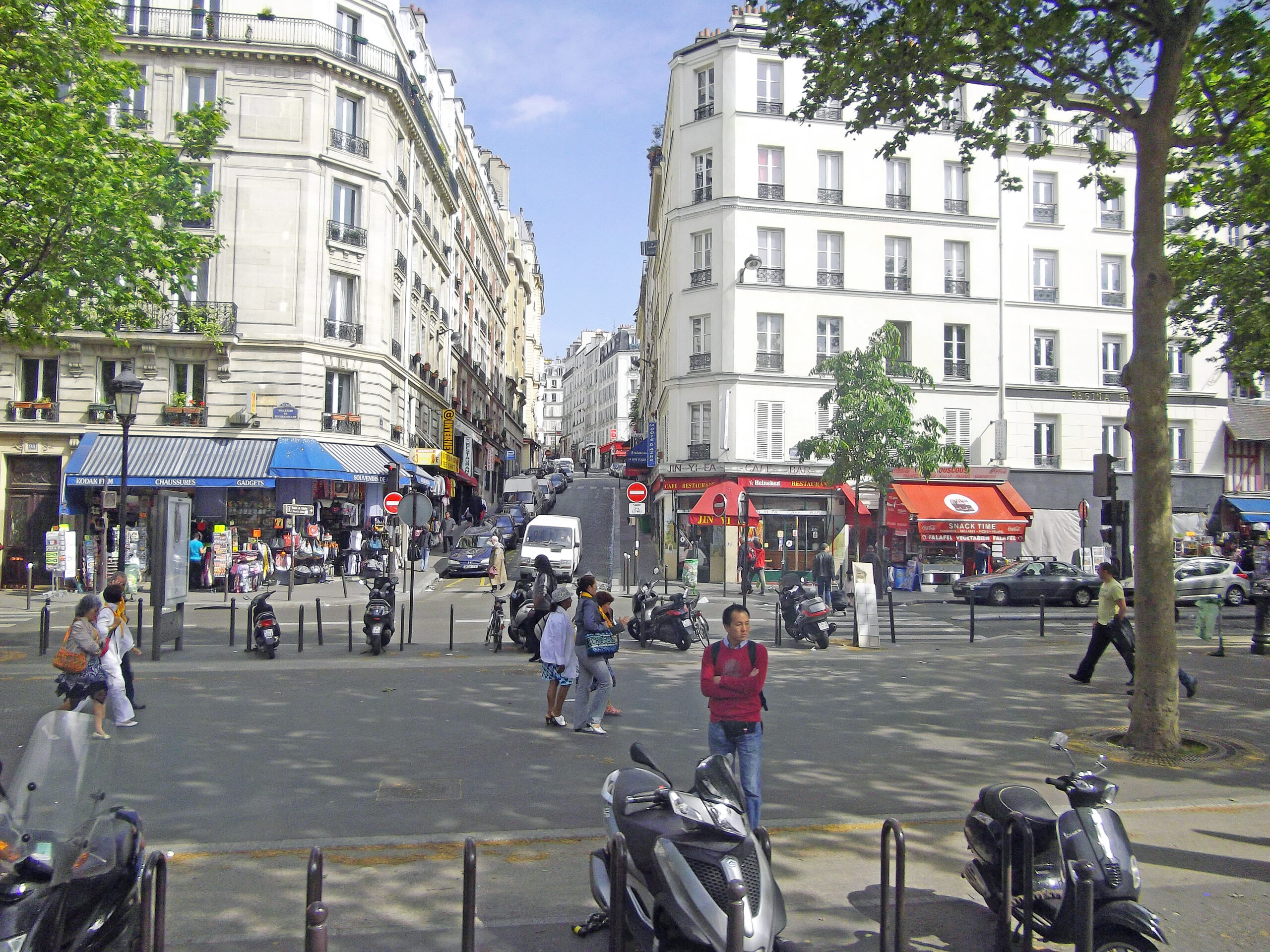 なだらかなポイントからは、建物の間から遠くに『モンパルナスタワー』を望める通りもあります。