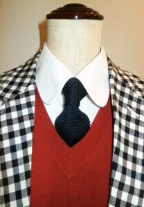 シャツのチェックは、こちらもトリコロールカラーになっていますが、お好みで単色のチェックを合わせても大丈夫です。