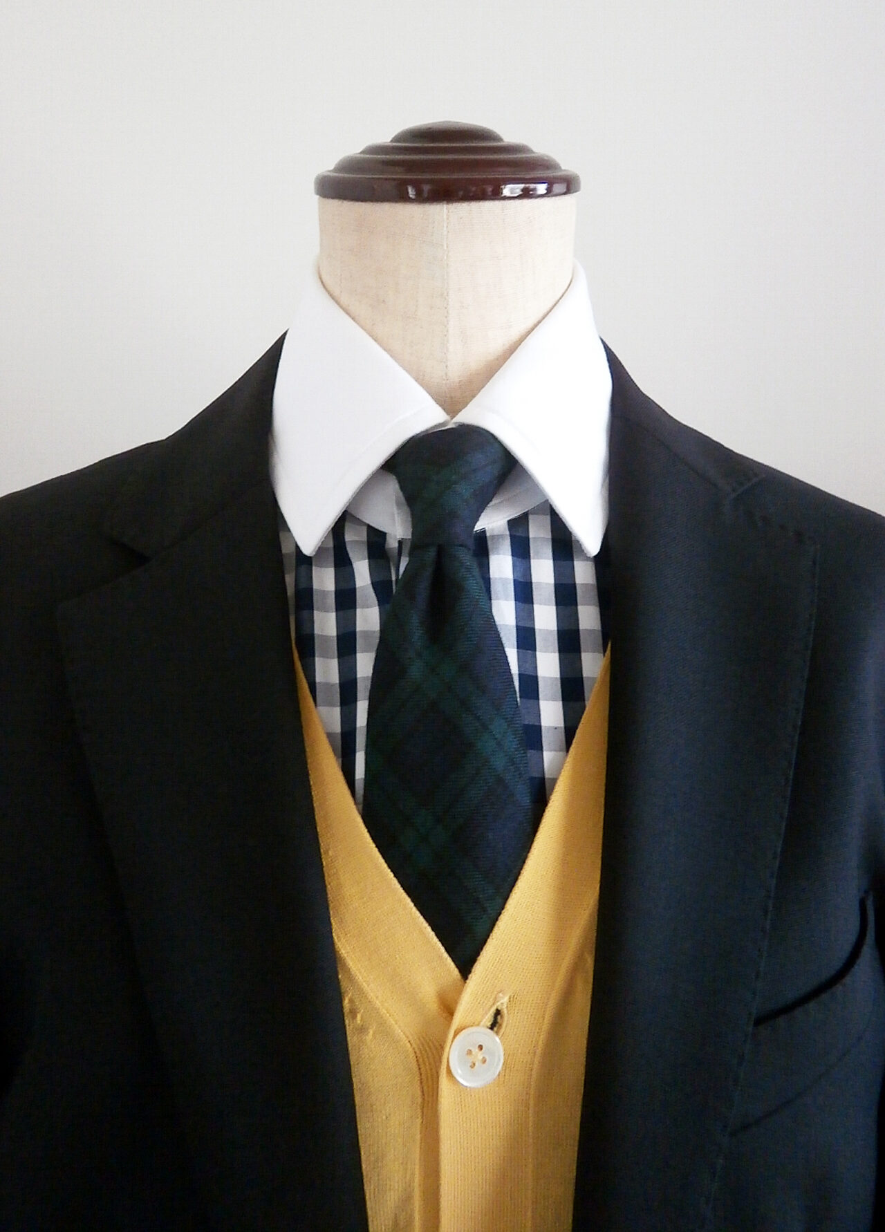 ウールのネクタイは(英国伝統のタータン柄)を使います。