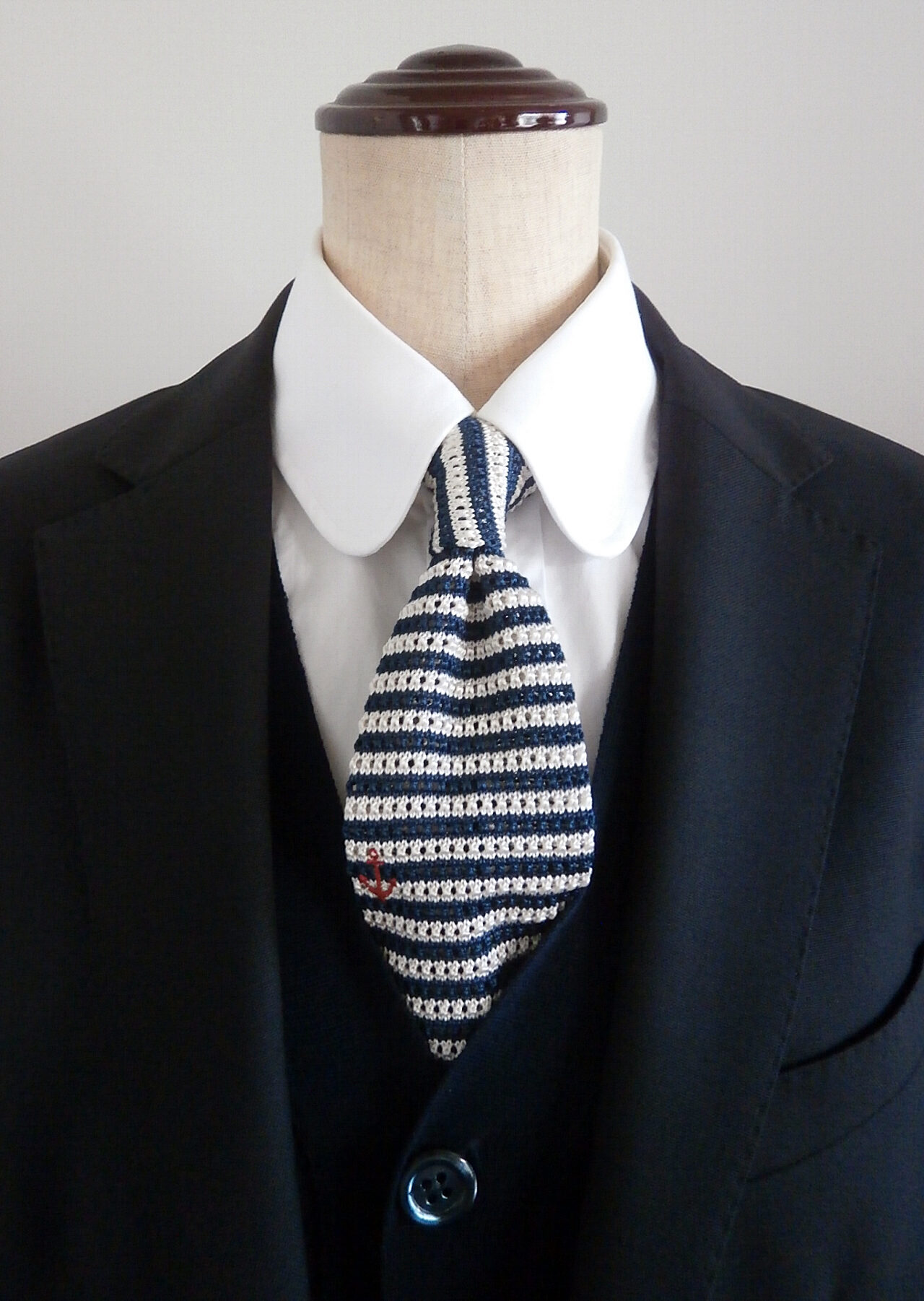 少し爽やかにしたい時にベストなのが、(ボーダー柄のニットタイ)です。