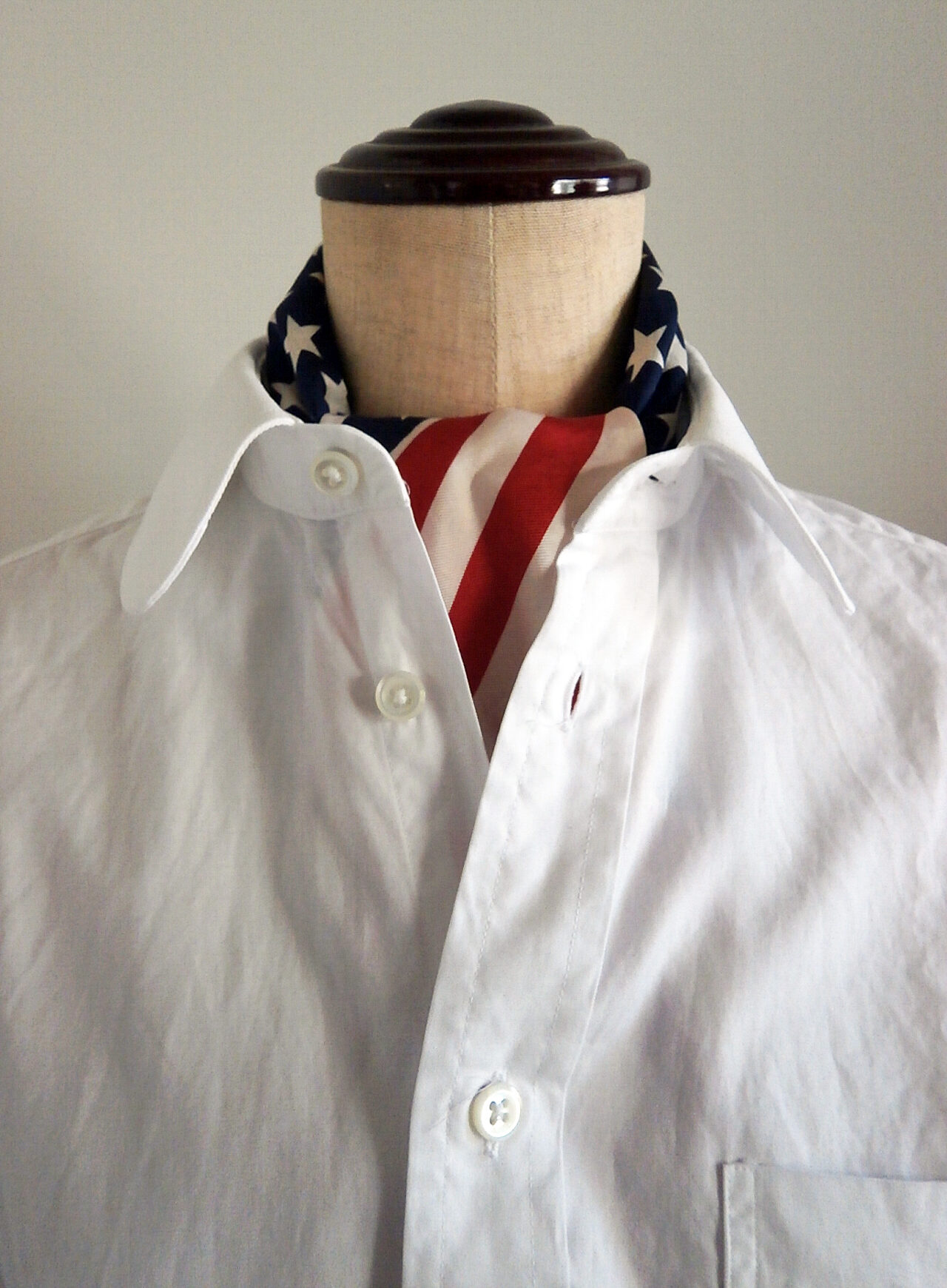 ホワイトのシャツは、どの衿型でも大丈夫ですが出来れば(ラウンドカラー)にすると、よりお洒落に見えますのでおすすめです。