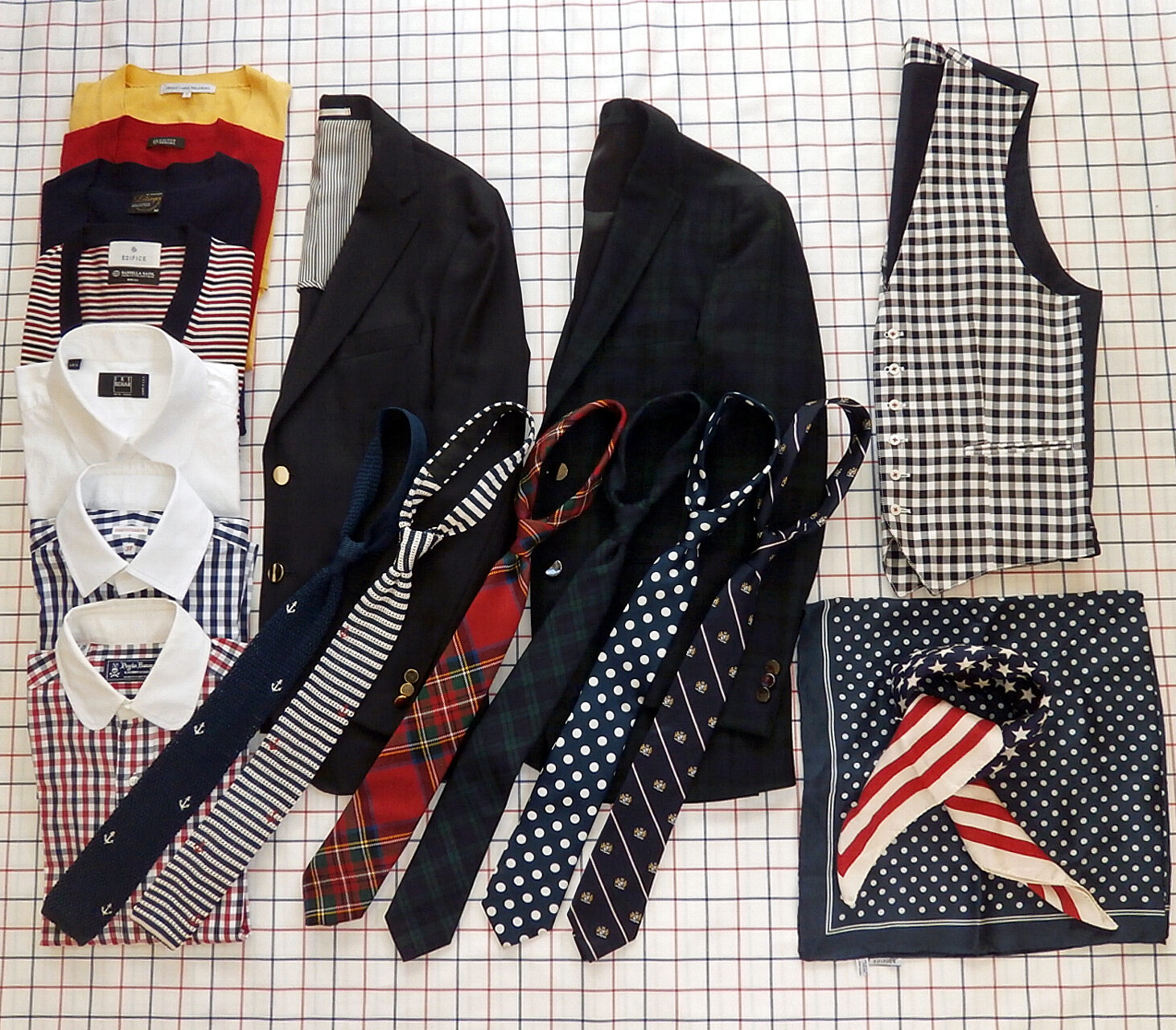 使うジャケットは(ネイビーブレザー)と(チェック柄ジャケット)です。